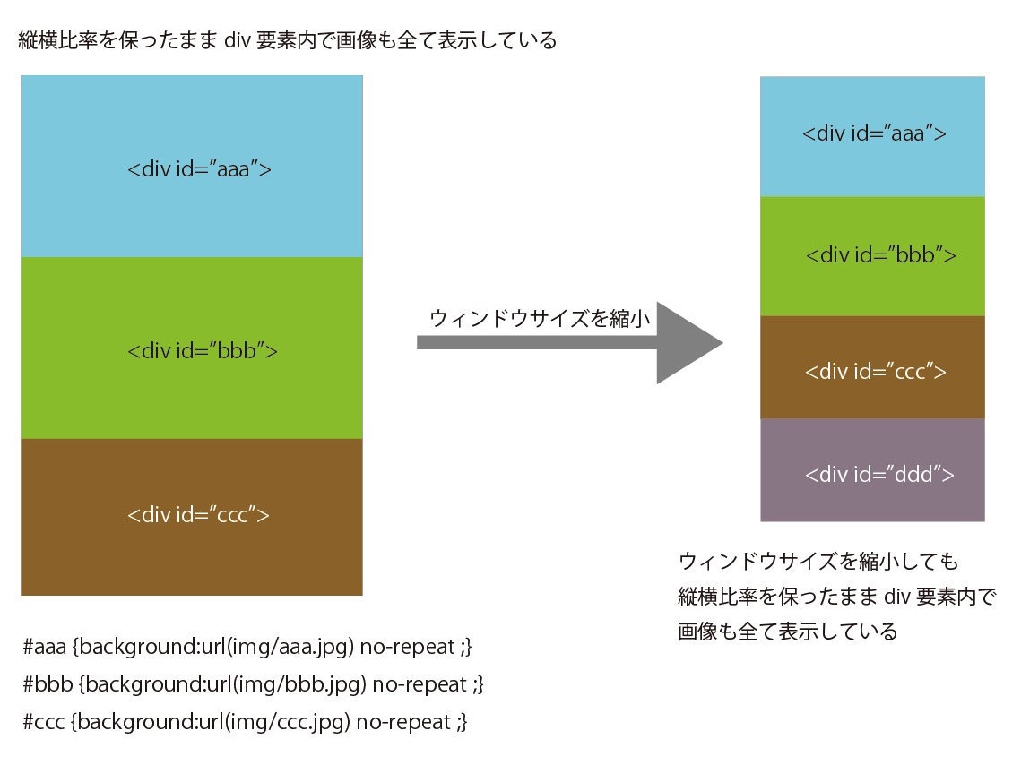 CSSで空のdiv要素内にbackgroundで背景画像をいっぱいに表示させ - css 背景 いっぱい